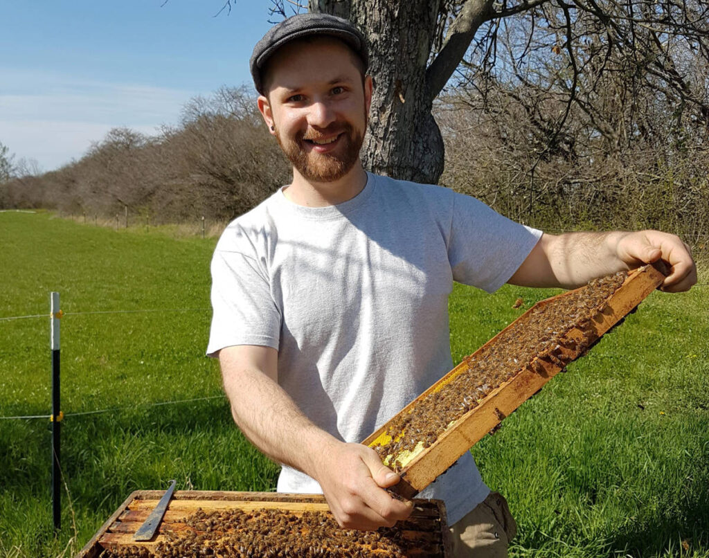 Ich bin Max, „die neue Generation“ in der Schlossimkerei. Aufgewachsen in Ruppichteroth, zwischen den Flüssen Sieg und Bröl, im Bergischen Land. Eine Kindheit und Jugend in der Natur, in Feld, Wald und Wiese – was mir völlig normal erschien, begreife ich heute als Privileg. Ich bin mir sicher, dass schon damals, zwischen Kuhfladen und Baumhaus sozusagen, meine Verbindung zu allem Natürlichen, zur Ökologie, zu Tieren und Pflanzen tief verwurzelt liegt.