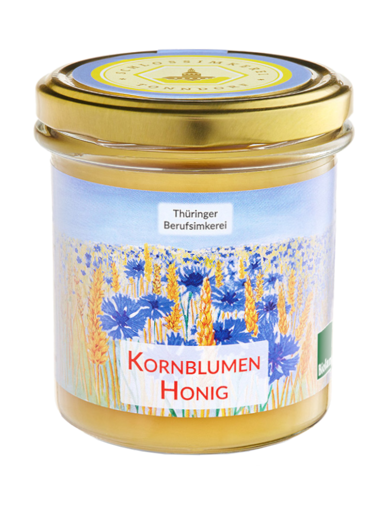 Kornblumenhonig von den Bio-Getreidefeldern Thüringens. Nur hier können wir diesen ganz besonderen Honig ernten.