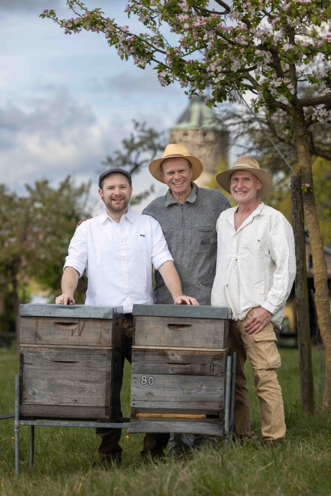 Wir, Maximilian Weber, Detlef Rien und Christian Harald Stiefel, führen die Bio-Imkerei gemeinsam als gleichberechtigte Gesellschafter. Unsere Berufsimkerei ist Bio zertifiziert und wir gehören dem Bioland Anbauverband an. Die Schlossimkerei befindet sich mitten auf unserem 15 ha großen Gelände in Thüringen und besteht aus über hundert Bienenvölkern.